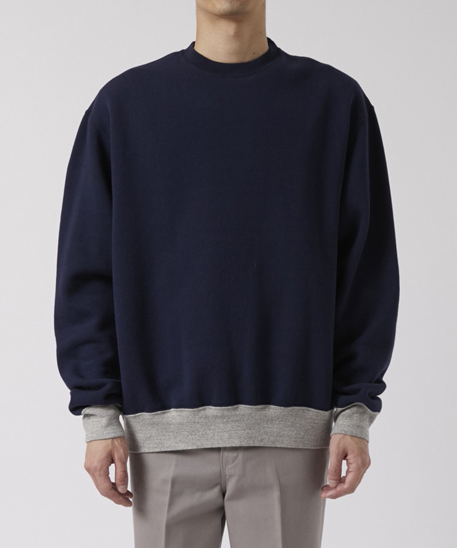 希少な編み機で編み立てた裏毛を先起毛することで独特な膨らみを持つ風合いに 仕上げられた2トーンスウェット。