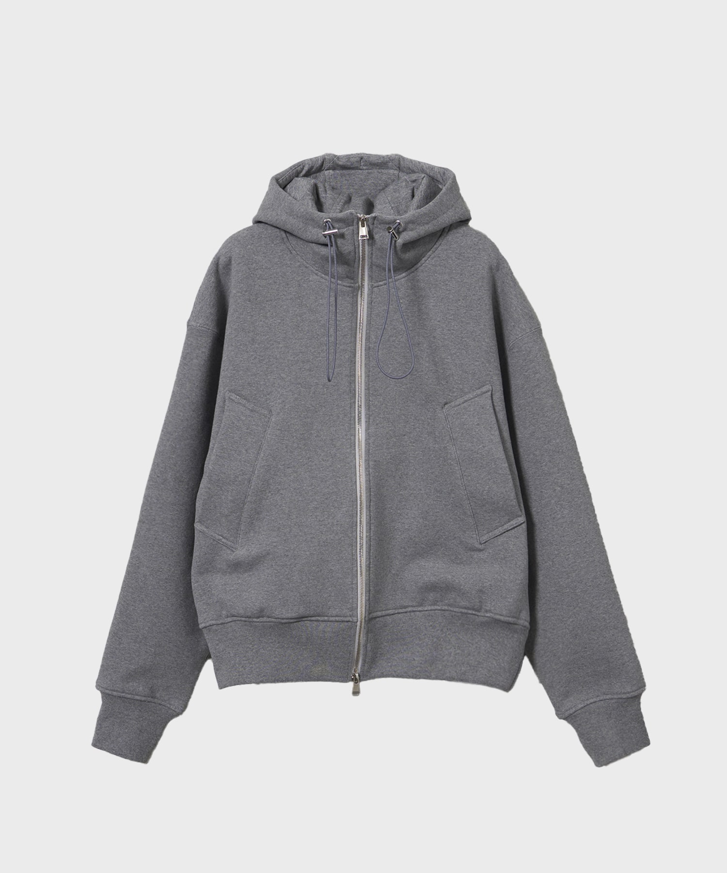ドローコード付きの立体的なフードが、スタイリッシュな雰囲気を醸し出します。