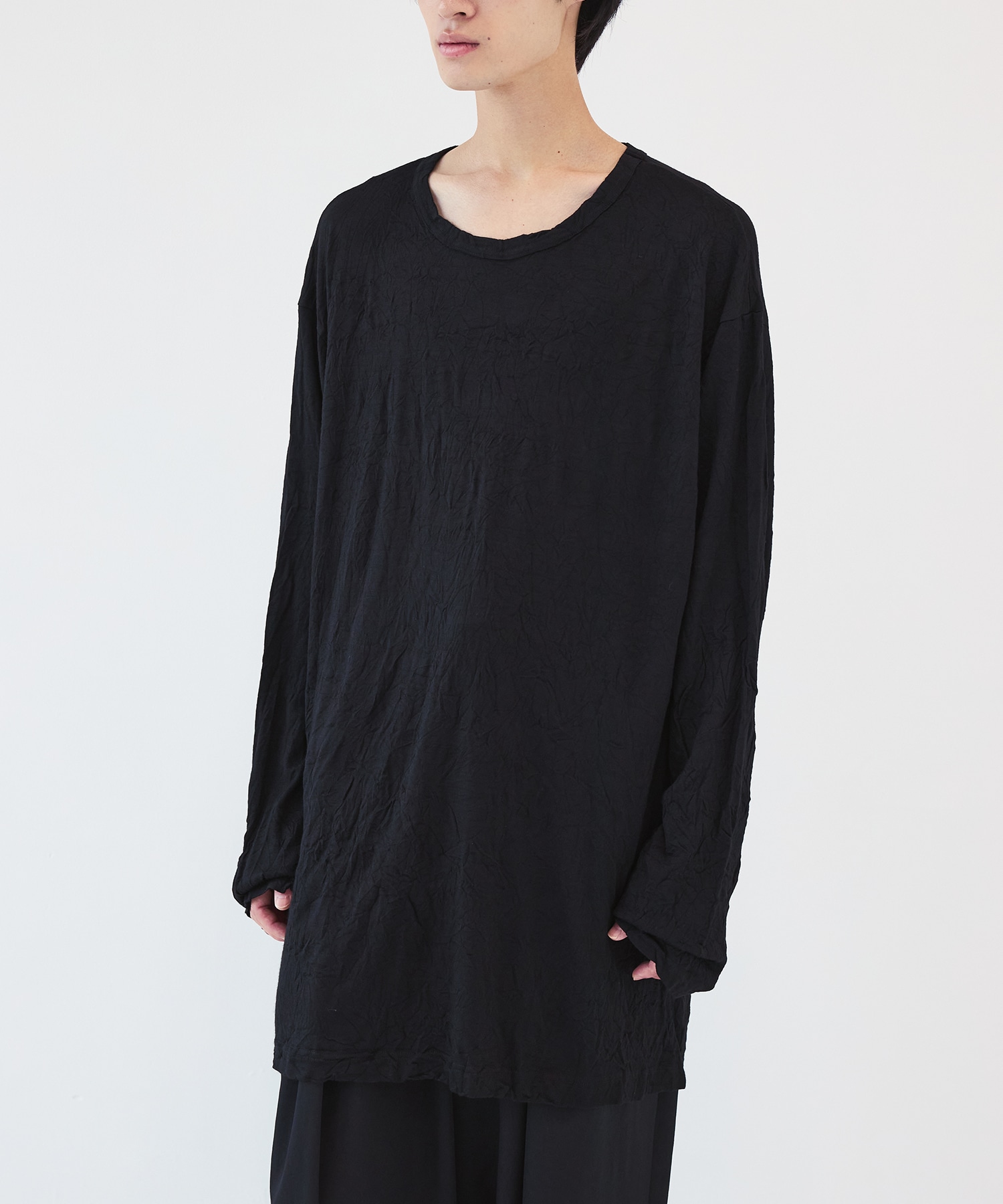 - / WASHABLE WOOL JERSEY ROUND NECK LONG SLV T
