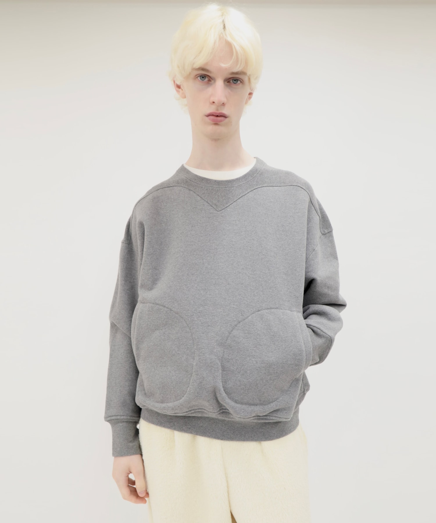 デザイン 全方位にストレッチ性を持たせた驚くほどモチモチのスーパーヘビースウェットを、ポケットが印象的なプルオーバーに仕立てました。 前Vから肩にかけてのリブによる切替、グローブポケット、V字の袖口リブ、サムホール。 ・素材:コットン99%,ポリウレタン1% ・透け感:なし ・裏地:なし ・伸縮性:あり メーカー品番:O012512PO -OUAT- コンテンポラリーアートのような実験的要素に、モードな雰囲気を纏ったプロダクトを展開するユニセックスブランド。数十年後にヴィンテージになりうる価値ある服を探求。アメリカや西欧だけでなく、まだ見ぬアイテムを求めてドイツを中心に東欧まで幅広い国に買い付けで訪れる中で、今までのリファレンスを元に、全く見たことないものをつくりたいという思いから、2019年より独学でオリジナルプロダクトの製作を始めたデザイナー・田村氏によるブランド。日本にはないインポート生地特有の静かで強いテクスチャー、縫製は技術の高い日本で行うのが生産の基本的なフローで、常に一着一着を本質的に捉えて高品質なプロダクトを展開。特殊な生地や資材、縫製付属などをビンテージのリファレンスと組み合わせてクリエイションを行っている。 ※店舗と在庫を共有しておりますので、受注確認メールが届いてもご注文のタイミングによりましては売り切れになる可能性がございます。 ※商品の色味につきまして、撮影環境、お客様のお使いのPCのモニター環境により実際のカラーと画像の色味が違って見える場合がございます。