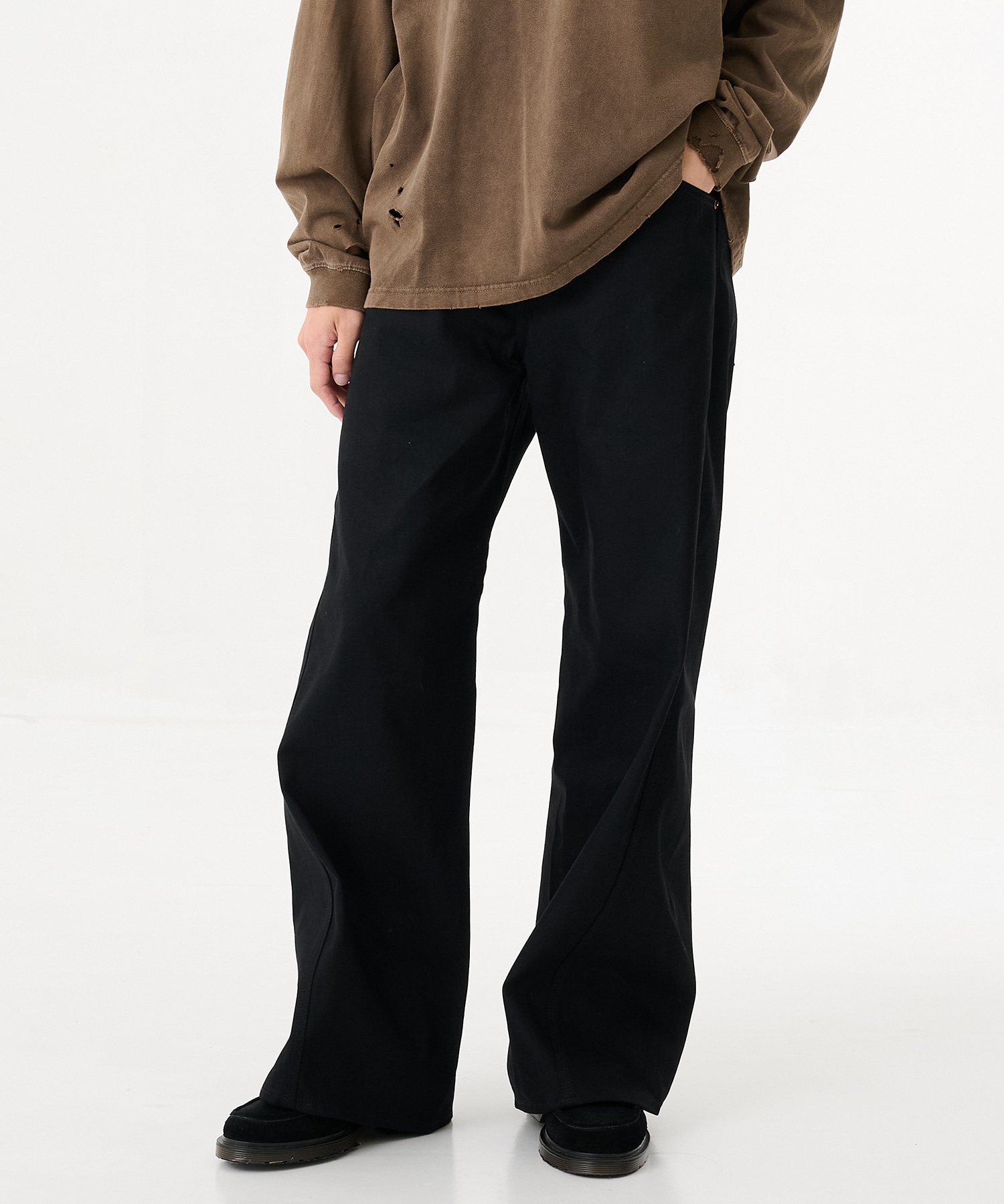 デザイン ブランド新定番の3Dデニムパンツ。 立体的なパターンによるサイドシームの捻れが独特なシルエットを生み出し、股上を浅めに設定することで腰回りはスッキリとしたシルエットが特徴的なワイドデニムとなっております。 フロントのステッチはトリプルステッチ仕様を採用。 また、ノンウォッシュリジットタイプのデニムとなっており、デニム特有の経年変化も楽しめる1本となっております。 ・裏地:なし ・伸縮性:なし