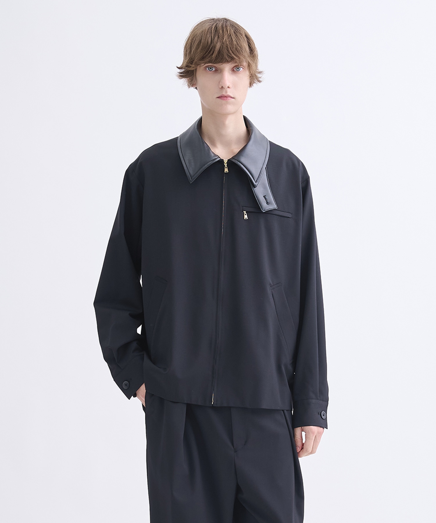 ストレッチ性のあるウールギャバジンを使用したチンタブ付きZIP UPブルゾン。