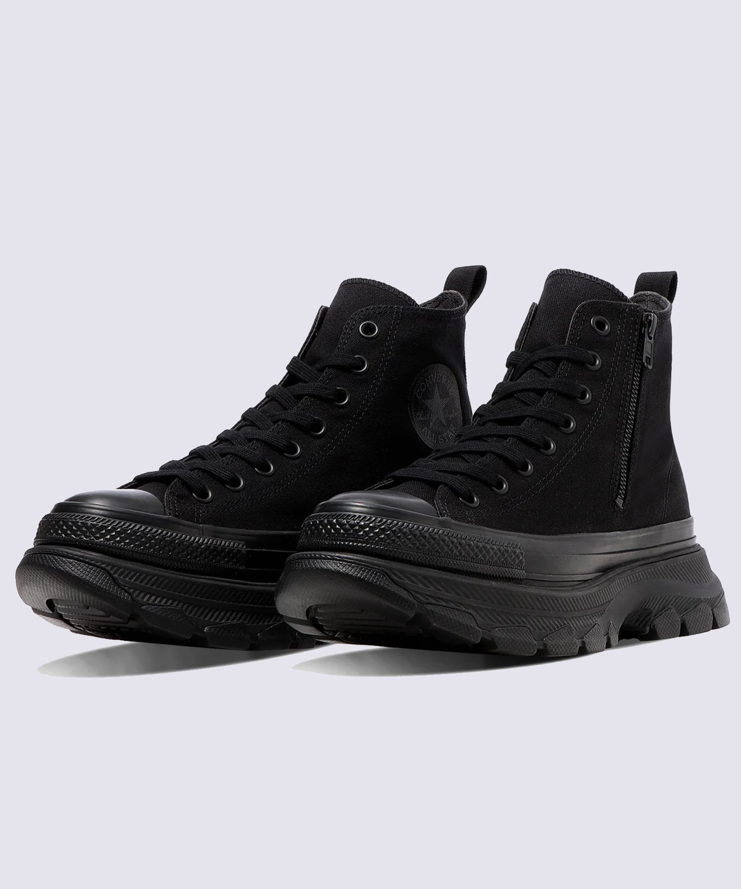 デザイン オールスターの定番スタイルに、トレッキングシューズをモチーフにしたボリュームのあるアウトソールを合体したトレックウエーブのパターンアレンジモデル。 サイドにジッパーを加えることで、スムーズに着脱できる機能性をプラス。 厚みのあるE.V.A.ミッドソールや防滑性を意識した意匠のアウトソールによりクッション性と防滑性を向上。 ブーツライクな印象のオフホワイト/ブラックと、汎用性の高いブラックモノクロームの2カラー展開。 ヒール高さ:約5cm ・素材:キャンバス ・透け感:なし ・裏地:なし ・伸縮性:なし メーカー品番:31316741 CONVERSE DESIGN YOURSELF。 コンバースを選ぶことは、あなた自身をデザインすること。 あなたの個性と、ときに調和し、ときに刺激しあいながら、 あなただけのスタイルを作り上げていく。 コンバースは、あなたの感性によって自由にそのイメージを変える。 コンバースと出会うことで、あなたは、あなたを発見する。 ※店舗と在庫を共有しておりますので、受注確認メールが届いてもご注文のタイミングによりましては売り切れになる可能性がございます。 ※商品の色味につきまして、撮影環境、お客様のお使いのPCのモニター環境により実際のカラーと画像の色味が違って見える場合がございます。
