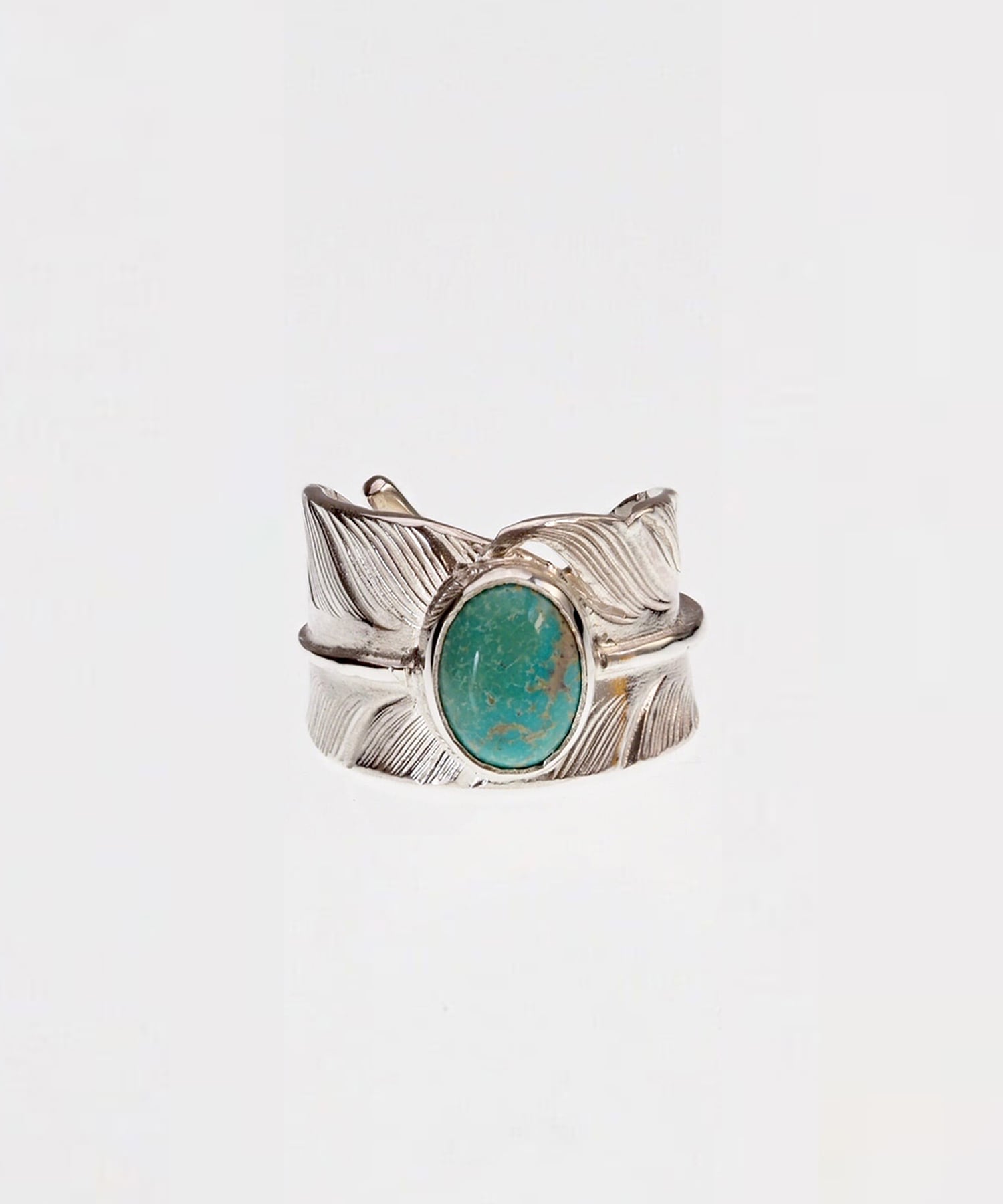 - / R-018 ターコイズ付きスタンプフェザーリング Middle