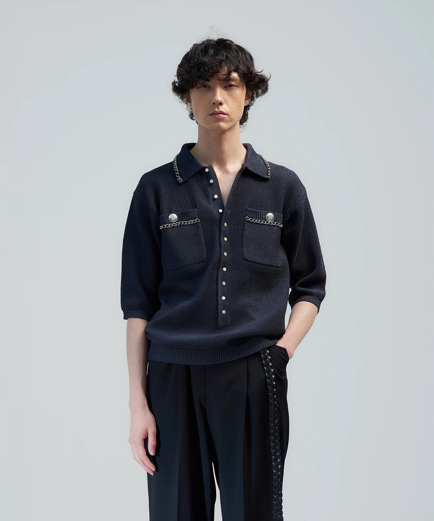 チェーンニットシリーズの春夏定番モデル、ショートスリーブニットポロ。