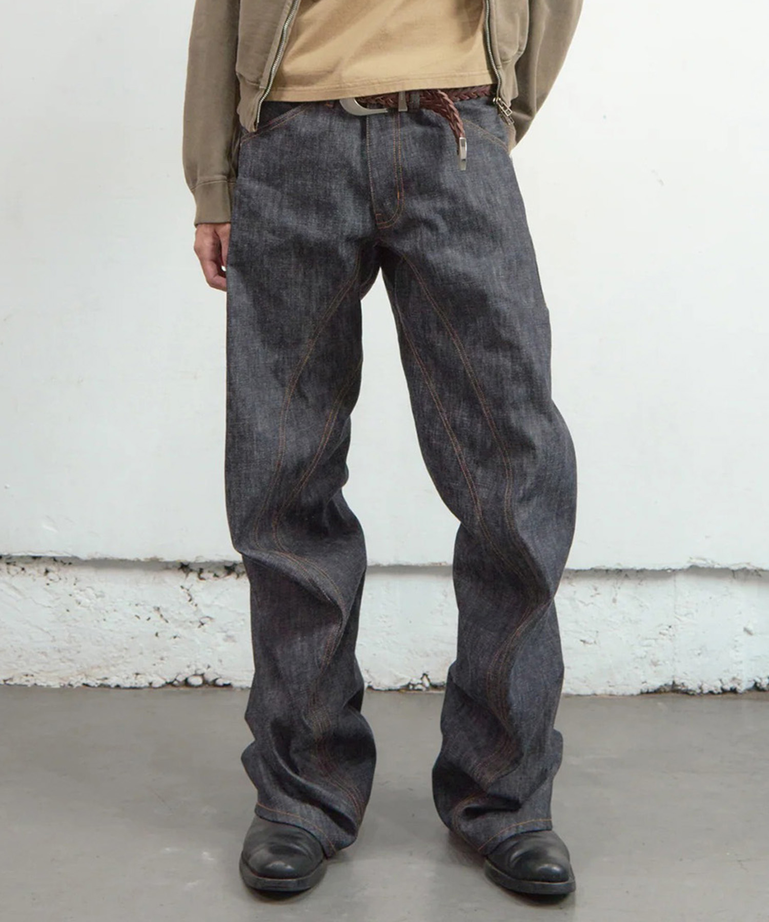 デザイン 13ozナチュラルスラブ ローテンション織りデニムを使用。 シグネチャーモデルから再構築し3Dパターンメイキングを駆使した立体裁断により、内から外側へかけて湾曲したカーヴシルエットを形成。 脇線を排除し膝の湾曲を更に強調したローライズシルエット。 ウエストとヒップ差を少なくした腰履きに適したフイッティング。タックとリベットはレーザー刻によるオリジナルパターン入り。 ・素材:100%COTTON ・透け感:なし ・裏地:なし ・伸縮性:なし メーカー品番:NF261P18 -NVRFRGT-“禅における不忘念(フモウネン)の精神とアイデンティティーの多様性”をコンセプトに掲げ、一過性のモノではなくワードローブに深く根差すモノ創りを目指す。独自のパターンカットを基に生み出される洗練性と実験的且つユニークなデザインのアプローチによるデイウェア。※店舗と在庫を共有しておりますので、受注確認メールが届いてもご注文のタイミングによりましては売り切れになる可能性がございますので、予めご了承ください。※商品の色味につきまして、撮影環境、お客様のお使いのPCのモニター環境により実際のカラーと画像の色味が違って見える場合が御座います。