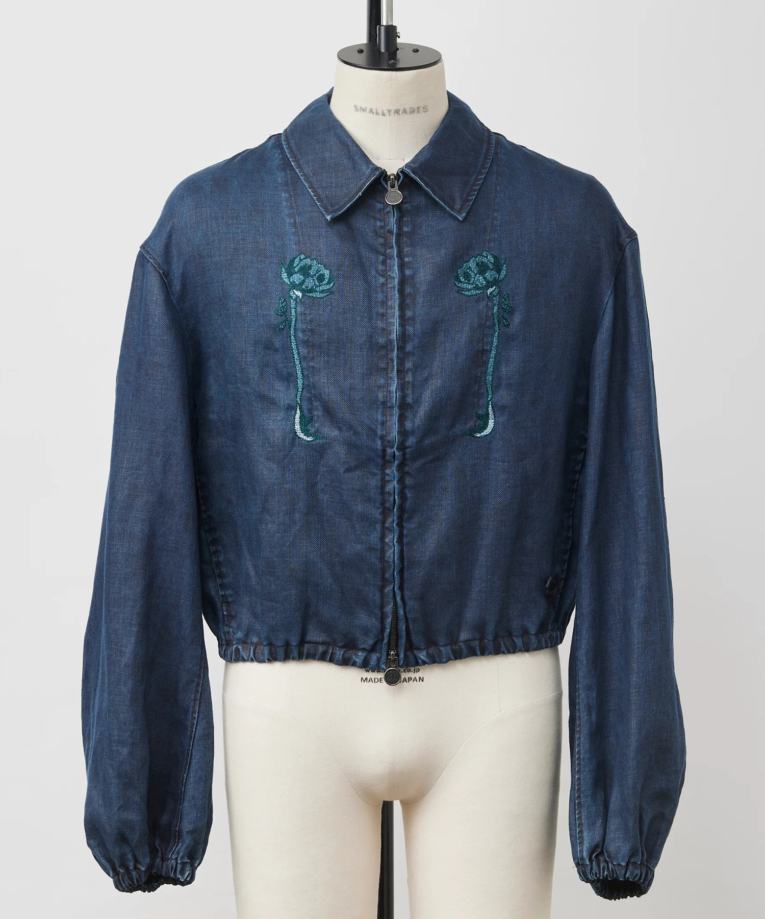 デザイン 割烹着の袖をイメージして袖にボリュームを持たせたフロントジップジャケット。 袖口に一本ゴムを入れているので、溜まりを作ってお楽しみいただけます。 前身頃には今期を象徴するカーネーションと月を、後身頃にはデザイナーが描いた部屋の情景のワンシーンを刺繍しています。 素材はフランスのインディゴアンティークリネンをイメージし、インディゴで染め、チンツ加工を施すことで表面に光沢と滑らかさを持たせたリネン。 ・素材:LINEN 100% ・透け感:なし ・裏地:なし ・伸縮性:なし メーカー品番:2601SK18E -SHINYAKOZUKA- 「全ての物事は明瞭である必要は無い」という思いから“BLUR”, ”VAGUE”, ”UNCLEAR”, ”HIDDEN”をメインキーワードに、新たな価値観をファッションに追い求めている。 美しいカッティング、装飾の少ないシンプルなデザインが人気。 ※店舗と在庫を共有しておりますので、受注確認メールが届いてもご注文のタイミングによりましては売り切れになる可能性がございますので、予めご了承ください。 ※商品の色味につきまして、撮影環境、お客様のお使いのPCのモニター環境により実際のカラーと画像の色味が違って見える場合が御座います。