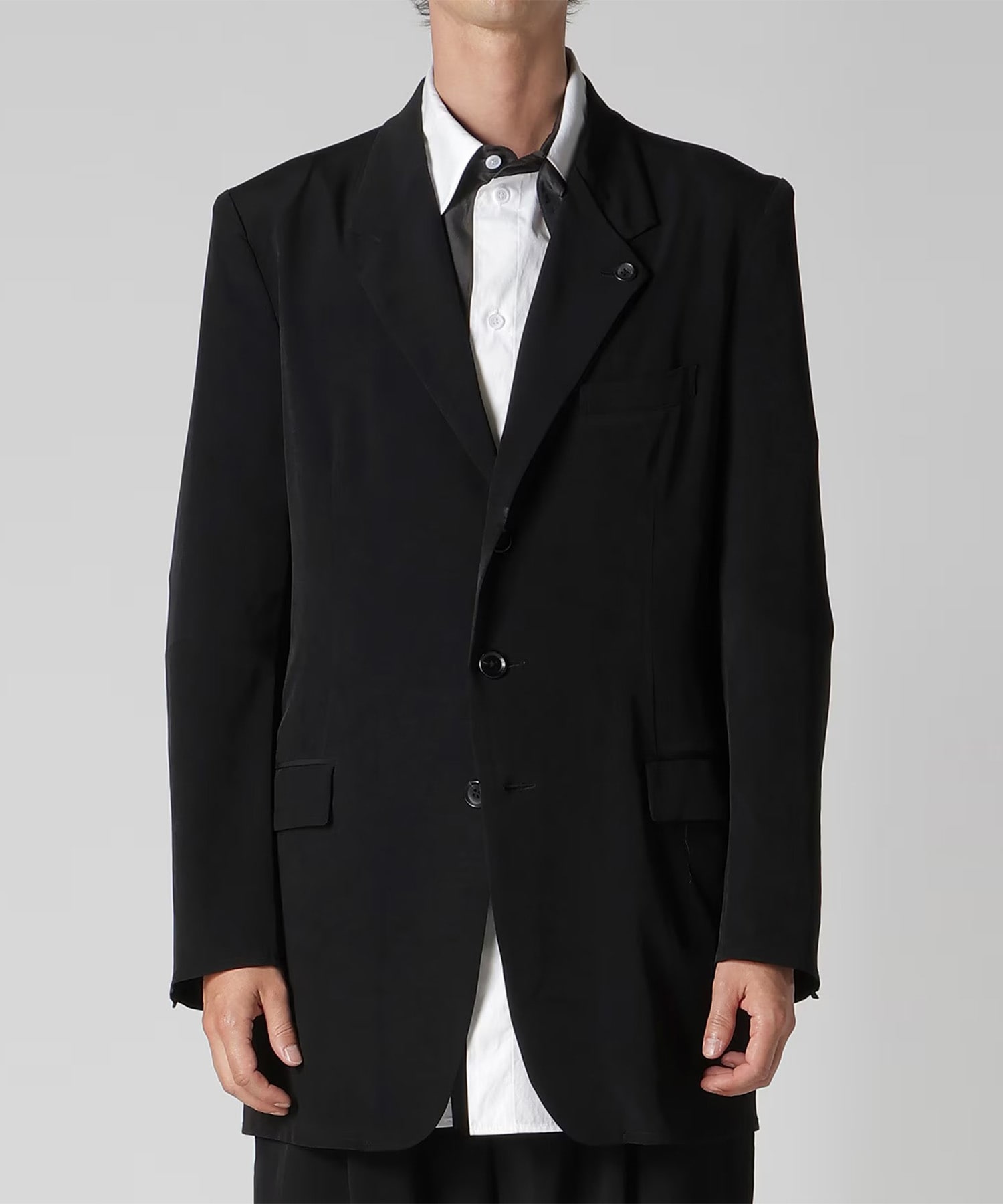 トリアセテート・ポリエステルのタキシード素材を使用した二重ラペルジャケット。