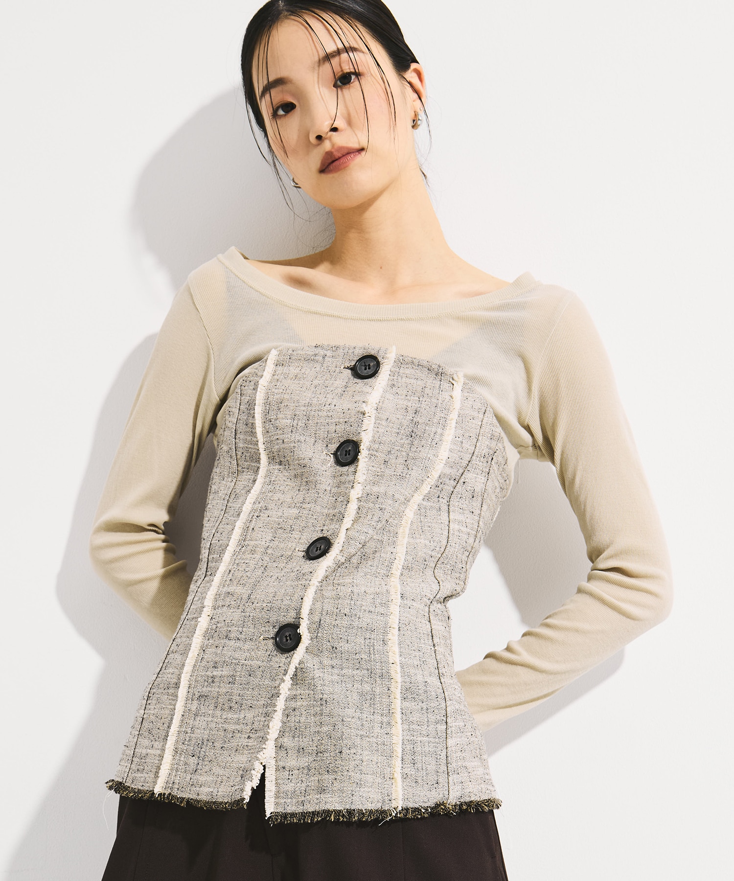 - / Silk Nep Bustier Combi Top