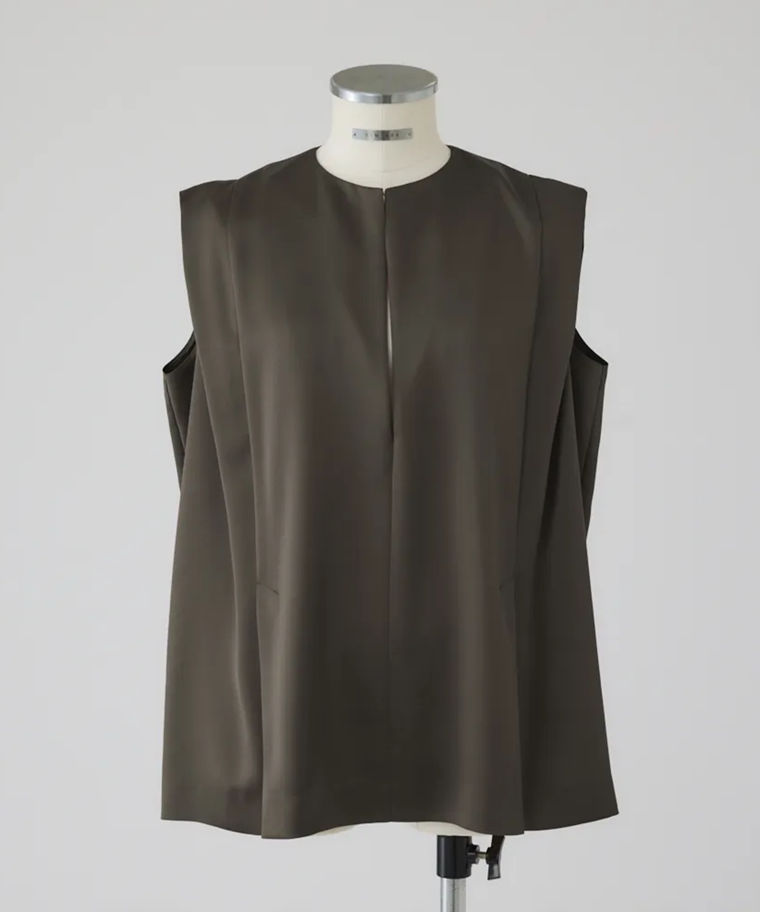 〈デザイン〉・オケージョンにもデイリー使いにもマッチするシックなデザイン・深い前下がりとフロントベンツのディティールがポイント〈素材〉・通常よりもタテ密度を多く設計し、ラグジュアリーなルックスのサテン生地を使用したベスト・ご自宅で洗濯が可能で、シーズンレスに活躍する実用性も備える透け感 なし裏地 なし伸縮性 なしメーカー品番:460IAN30-0131RIM.ARK凛とした強さ、知性、品格。揺るぎない「芯」。 RIM.ARKが目指すのは、自立した女性の美しさを引き立てる服。 無駄を削ぎ落としたシンプルでミニマルなデザイン。 ものづくりの息吹が感じられる素材、立体的なシルエット。 トレンドにとらわれない、タイムレスで本質的なアイテムを通して纏う人の内面的な豊かさを表現している。