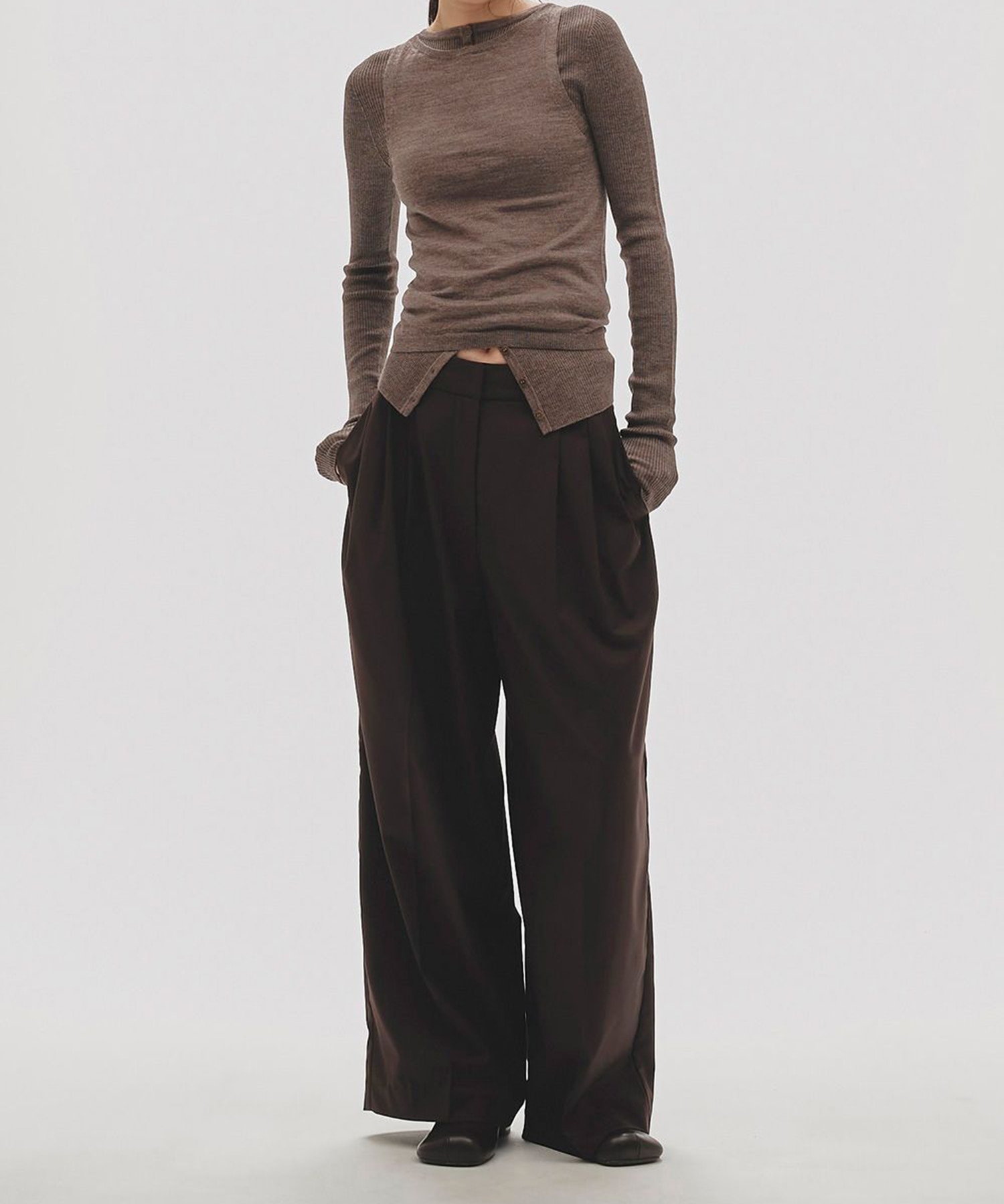 ・タックを3本入れたワイドなシルエットは、シンプルなトップスに合わせるだけでマニッシュな印象に