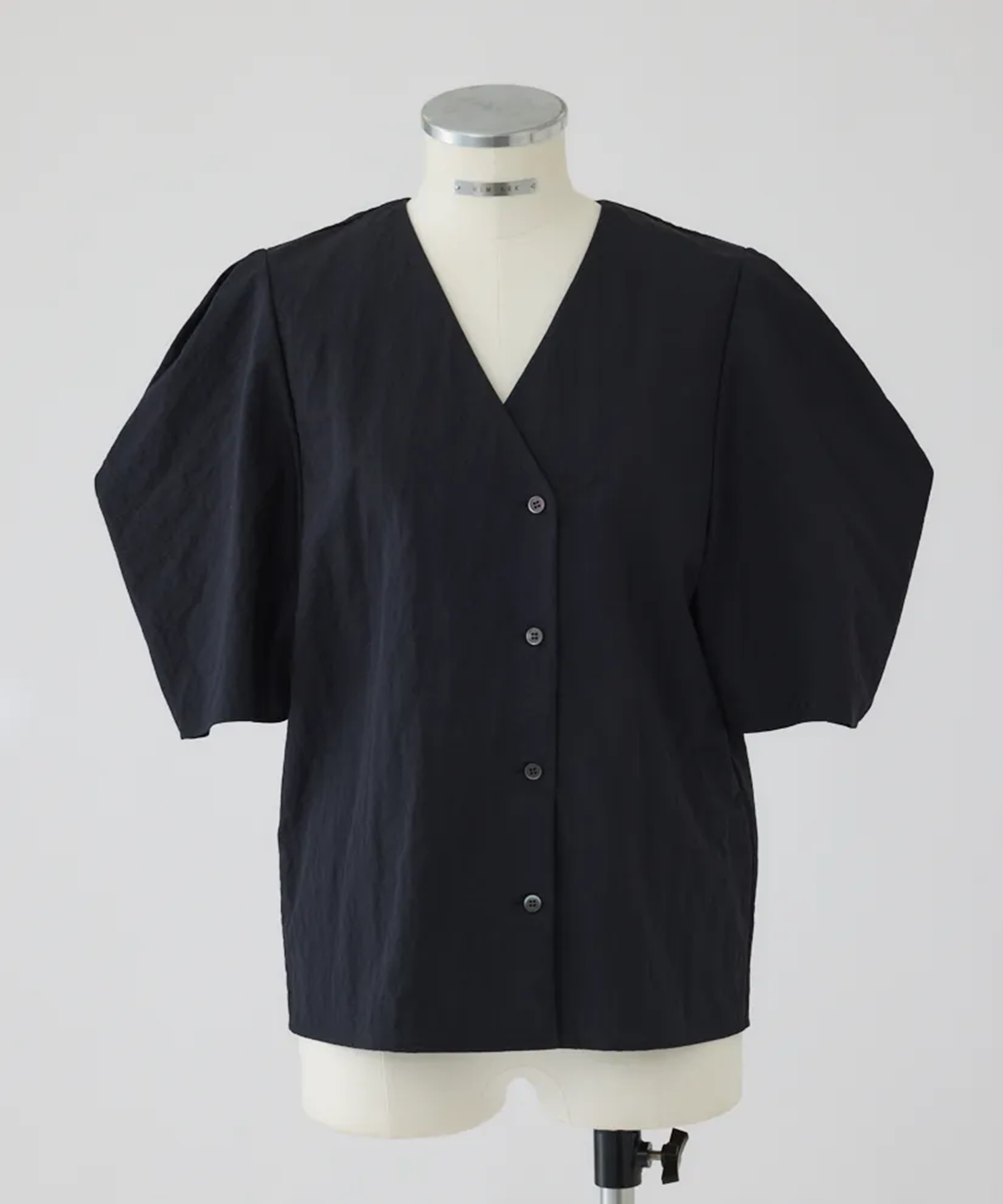 〈デザイン〉・ペーパーライクな質感と空気を含んだような風合い・暑い季節も快適な着心地を叶えてくれるボリュームスリーブVネックシャツ・コンパクトなサイズながらジャケットライクにも着用できるデザイン〈素材〉・中空糸を使用している為、軽さも魅力の一枚・梅雨時期にも嬉しい撥水機能つきで実用性も高いアイテム透け感 ややあり裏地 なし伸縮性 なしメーカー品番:460IAS30-1591RIM.ARK凛とした強さ、知性、品格。揺るぎない「芯」。 RIM.ARKが目指すのは、自立した女性の美しさを引き立てる服。 無駄を削ぎ落としたシンプルでミニマルなデザイン。 ものづくりの息吹が感じられる素材、立体的なシルエット。 トレンドにとらわれない、タイムレスで本質的なアイテムを通して纏う人の内面的な豊かさを表現している。