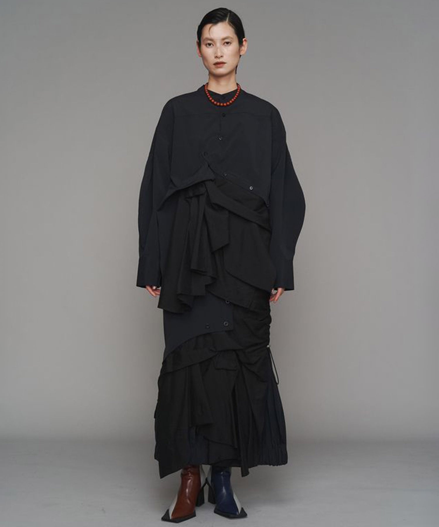 〈デザイン〉・透け感のあるチェック素材ととろみのあるストライプ素材をドッキングさせたデザインスカート・ベースはUN3D.(アンスリード)定番のタイプライター素材を使用しており、扱いやすさと着心地の良さも兼ね備えてる・ランダムにとったタックや変形した切り替えデザイン、コクーンなシルエットで立体感のあるデザイン〈素材〉透け感 ややあり裏地 一部のみ伸縮性 なしメーカー品番:5225508001UN3D.UN STANDARD, UN SIMPLE, UN SIMILAR3つのUN(アンチテーゼ)を語源にしており、時代、流行、常識、固定概念に1つ1つ疑問を持ち、自由な個性や感性を大切にしたいという思いを込めています。構築的なタックや複雑なプリーツ、そして美しいドレープを使用したアイコニックなディテール、体型が美しく見えるよう計算されたシルエット、長く愛して頂けるハイクオリティー、ストレスのない着心地の良さを追求し1点1点仕上げています。