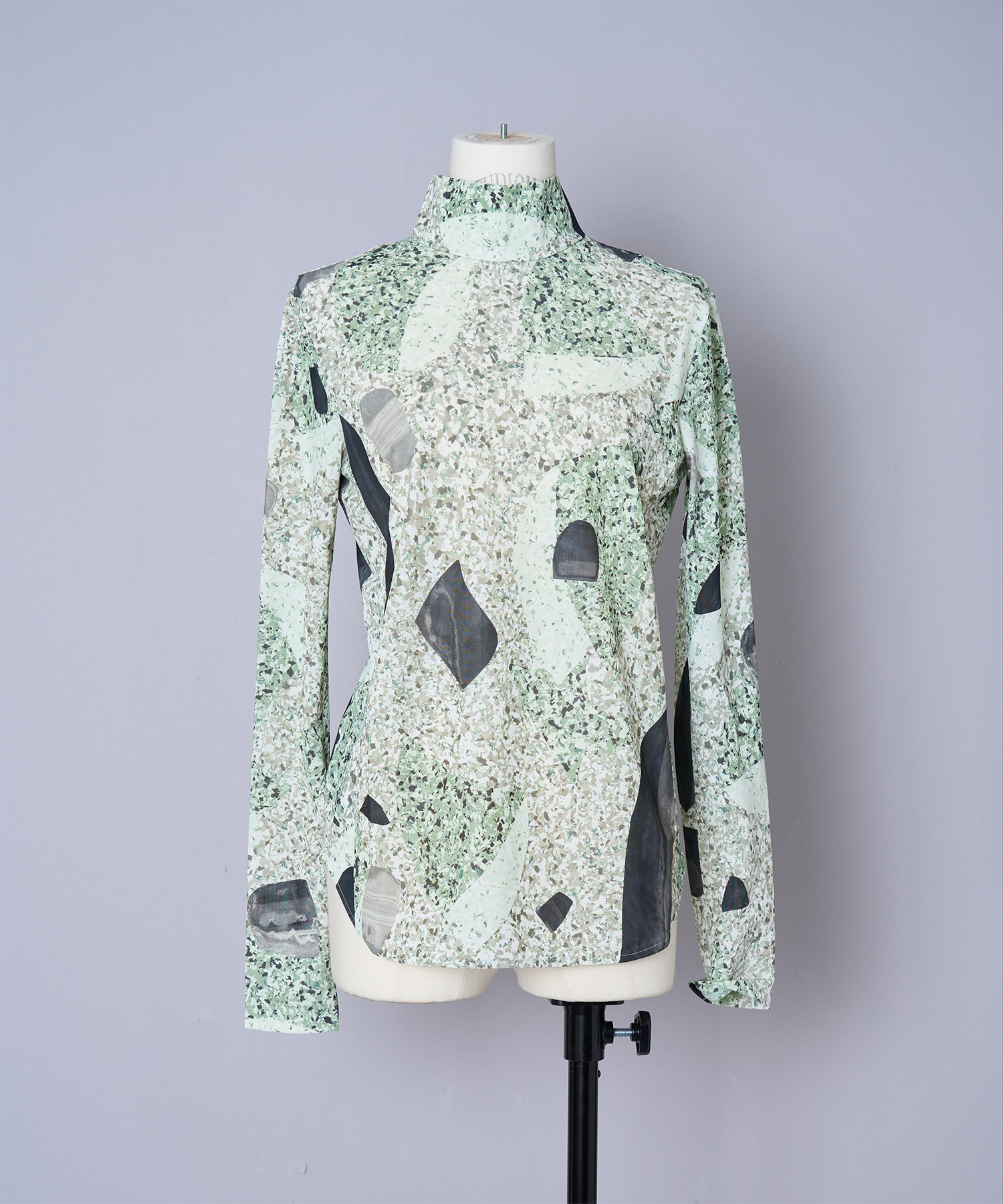 - / Marble Print Jersey High Neck Top