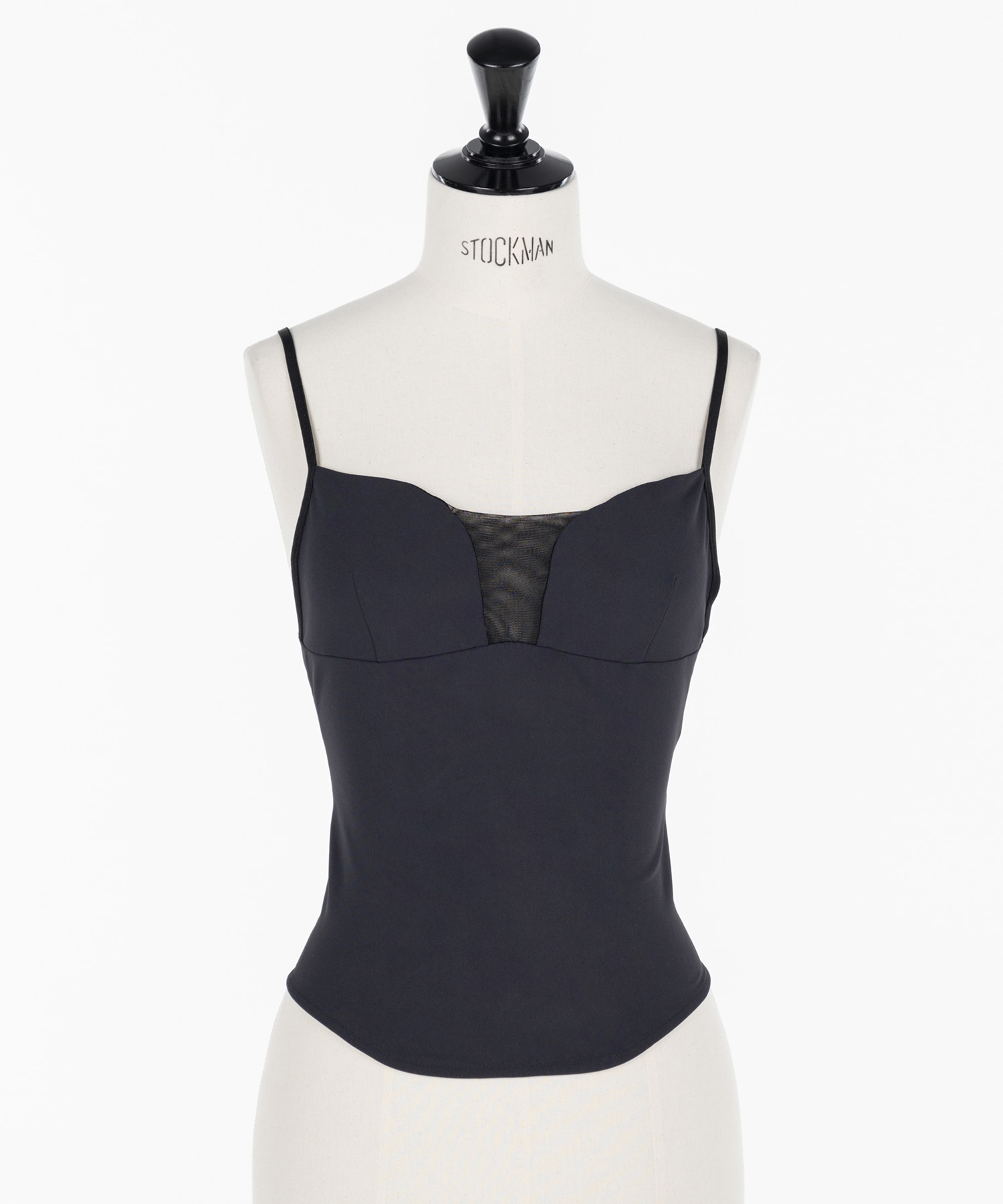 〈デザイン〉・バックオープンデザイン・トップスとしてもインナーとしても着用が可能・ストレッチ性◎〈素材〉・紫外線抑制、接触冷感性のある機能性に優れた素材・優しいドライタッチが特徴的透け感 あり裏地 あり伸縮性 ありメーカー品番:FTC254-0404FETICO2020年にデザイナー舟山瑛美とパタンナー高浜温子がフェティコ(FETICO)をスタート。ブランド名は、デザイナーを務める舟山瑛美のニックネームから名付けられている。ブランドの着想源となるのは、女性の造形美を強調するスタイル。女性の美意識や身体観を独自の視点で再構築し、様々な要素を組み合わせながらユニークで新しい女性像を提案する。ラインナップするアイテムは、透け感や光沢のある素材を用い、女性の体のラインを美しく見せるシルエットに仕立てている。日本国内で生産されているのも特徴で、素材だけでなく縫製のクオリティの高さもブランドの強みとなっている。