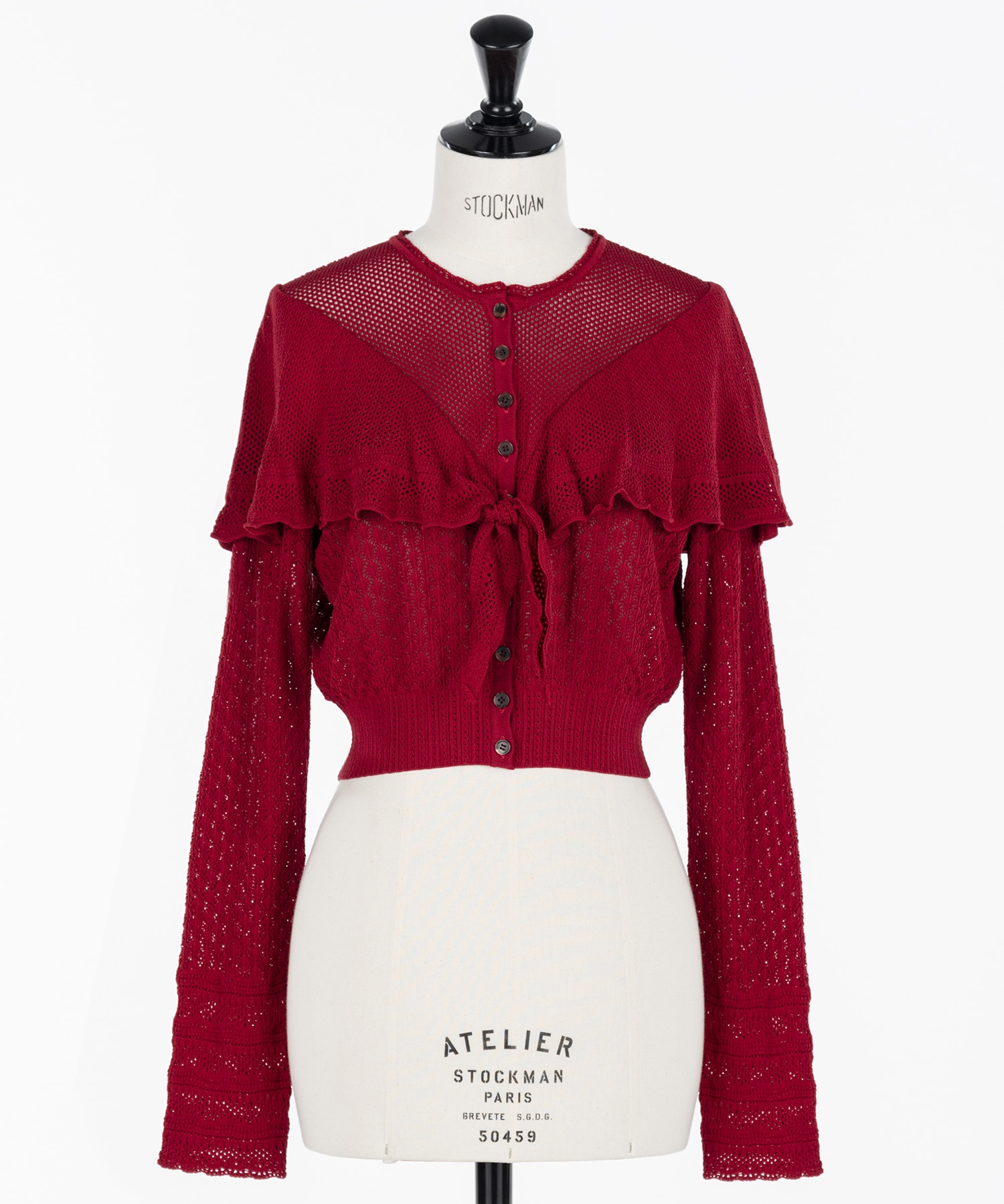 〈デザイン〉・程よい透け感・ケープデザイン・クロップド丈〈素材〉・レーヨンベースで柔らかく着心地の良い素材透け感 あり裏地 なし伸縮性 ありメーカー品番:FTC254-0706FETICO2020年にデザイナー舟山瑛美とパタンナー高浜温子がフェティコ(FETICO)をスタート。ブランド名は、デザイナーを務める舟山瑛美のニックネームから名付けられている。ブランドの着想源となるのは、女性の造形美を強調するスタイル。女性の美意識や身体観を独自の視点で再構築し、様々な要素を組み合わせながらユニークで新しい女性像を提案する。ラインナップするアイテムは、透け感や光沢のある素材を用い、女性の体のラインを美しく見せるシルエットに仕立てている。日本国内で生産されているのも特徴で、素材だけでなく縫製のクオリティの高さもブランドの強みとなっている。
