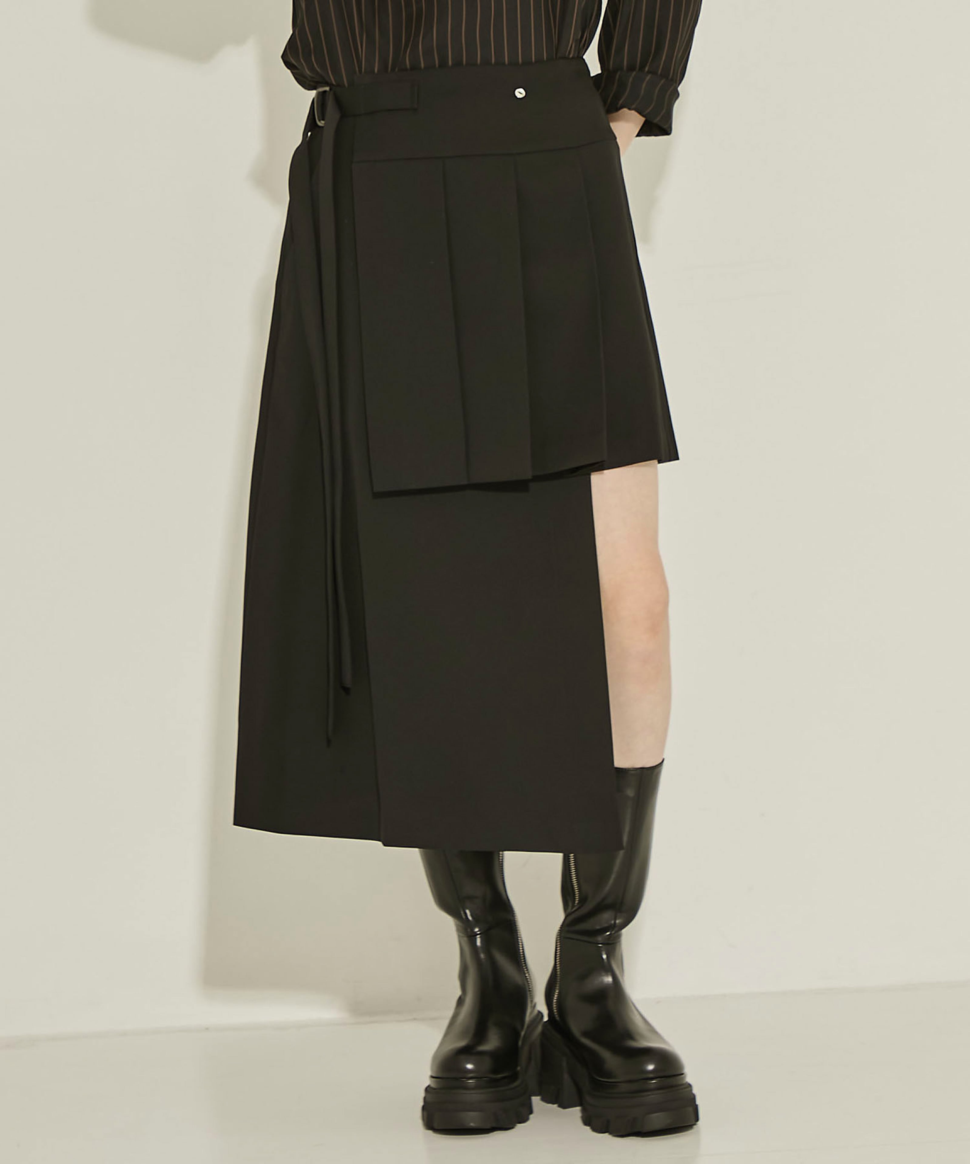 〈デザイン〉・左右でアシンメトリーな丈感が特徴のラッププリーツスカート・パンツの上にレイヤードしたり着回しが効くアイテム〈素材〉・高密度織したギャバジンに樹脂加工を施した素材で、ペーパー加工と名付けられたように、紙のような落ち感を表現した生地・パリッとハリのある仕上がりに、光沢と滑らかな肌触りで、高級感がある素材透け感 裏地 伸縮性 メーカー品番:U744-S05-100UJOH西崎暢により2009年に設立された日本のファッションブランド。パタンナーの視点によるクリエーションが特徴で、本質的なテーラーリングや大胆なカッティングなど、布の理にかなったデザインを絶妙なバランスで取り入れている。