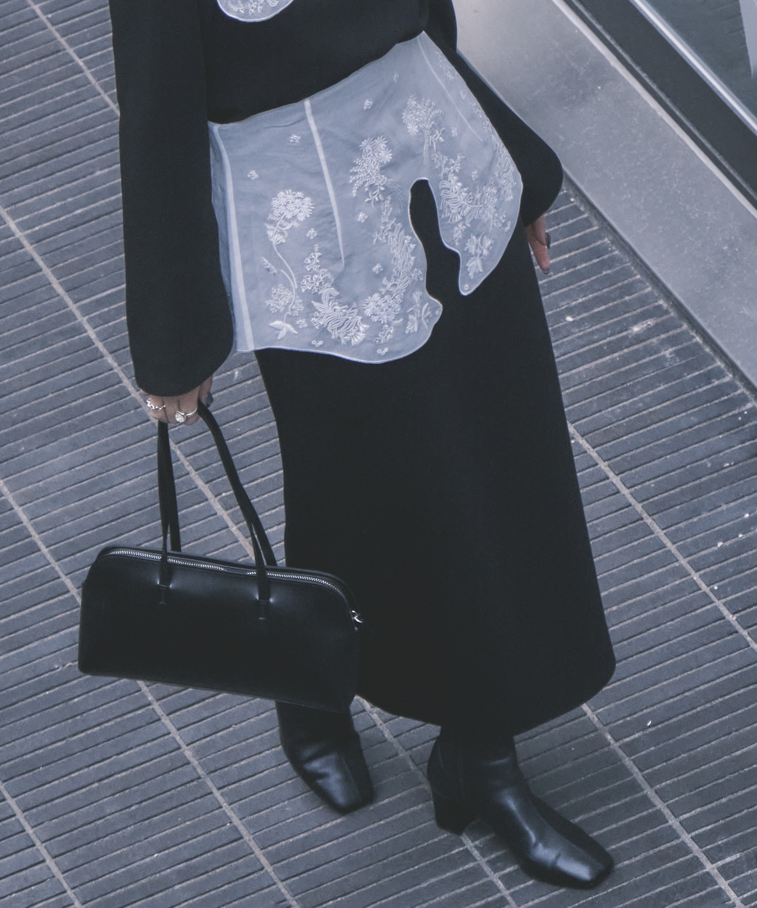 〈デザイン〉・トリアセテートとポリエステルのジョーゼットを使用した刺繍ペプラムスカート・オリジナルの花柄を描いたレースのペプラムは取り外してシンプルなペンシルスカートとしても活躍する・ハイウエストのデザインが縦のラインを強調しメリハリのあるシルエットを作り出し、スタイルアップを叶える1着に*腰のレースは取り外しが可能〈素材〉・トリアセテートの中でも膨らみのある糸を使用し、ポリエステルを混合することで、ストレッチ性のある生地が扱いしやすく、発色性の良さを獲得しながらシワにもなりにくい素材がイージーケアを叶える・オーガンジーの生地に刺繍を施したペプラムをつけることで贅沢で華やかな印象を与える透け感 なし裏地 あり伸縮性 なしメーカー品番:MM25FW-SK104Mame Kurogouchi2010年に黒河内真衣子が「mame(マメ)」をスタート。2020年秋冬シーズンから「マメ クロゴウチ(Mame Kurogouchi)」に変更。デザイナー自身の経験や記憶に、伝統と自然、職人技術と最新のテクノロジーを複雑に織り交ぜて作り上げられるコレクションを展開する。私小説的とも言えるマメクロゴウチのクリエーションはタイムレスなデザインを上質な素材、オリジナルの生地や柄、美しい曲線を描くユニークなシルエットで都会的かつ現代的に表現し、現代における女性らしさと、女性であることへの賞賛を力強く体現する。