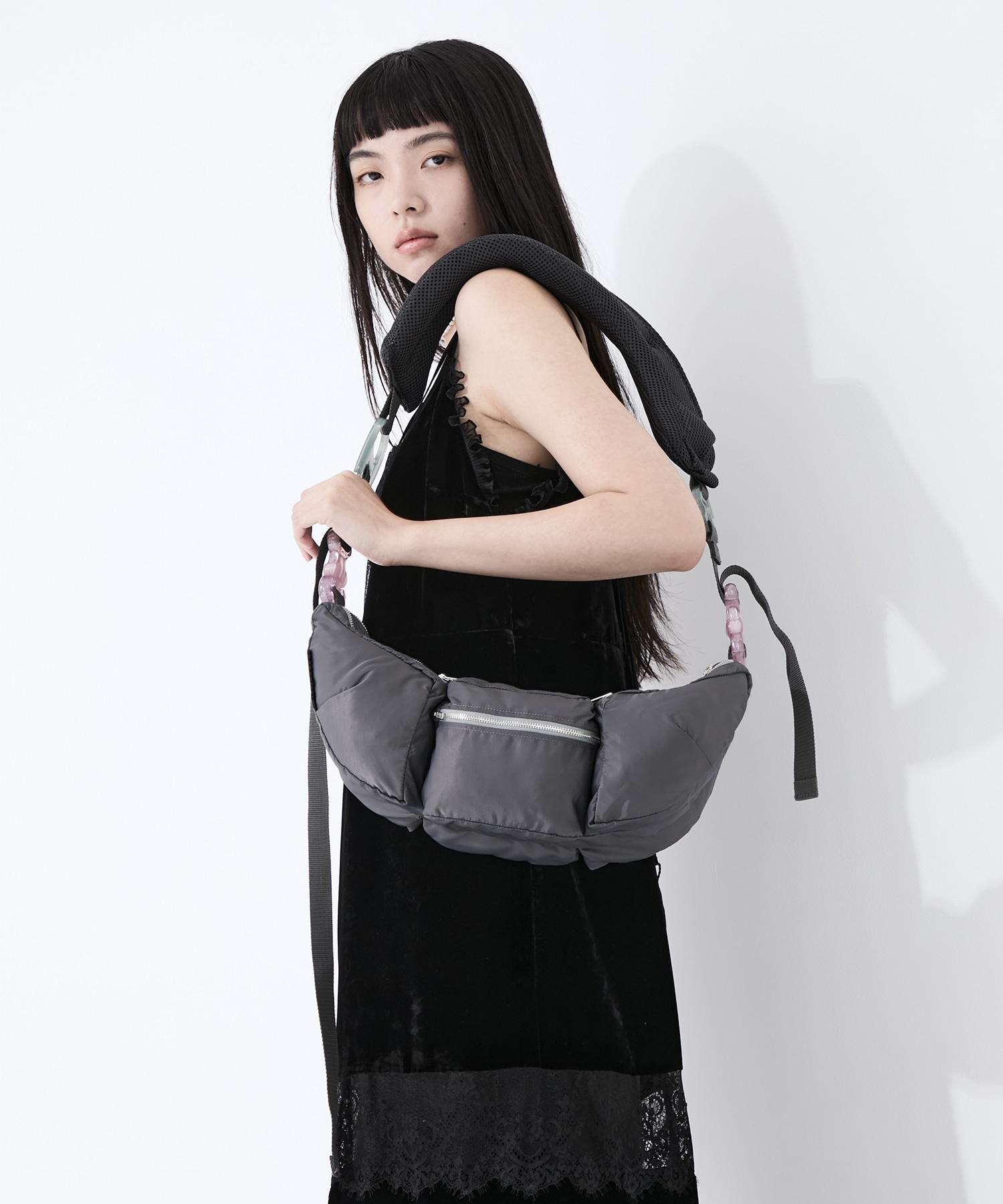 ★スタイリングアイテム 別注black lace velour camisole dress〈デザイン〉・収納が豊富なナイロンバッグ・小さなポケットが前後に3つ、大きなポケットが1つ・大きなポケットにはペットボトルや折り畳み傘なども収納可能・日常使いにはもちろん、アウトドアなどのレジャーにも活躍メーカー品番:MSS005GD25MIKIOSAKABE坂部三樹郎とシュエ・ジェンファンが2006年に設立したMIKIOSAKABE〈ミキオサカベ〉。坂部三樹郎は2002年にエスモードパリを卒業。その後、アントワープ王立美術アカデミーに進学し、ファッション科を首席で卒業。台湾生まれのシュエ・ジェンファンは、ベルギー・ブリュッセルのアートスクール、ラ・カランブル在学中に坂部三樹郎と出会い、MIKIOSAKABEを立ち上げるために来日。東京の新しいファッションシーンを代表するブランドとして、未来を表現し続けている。