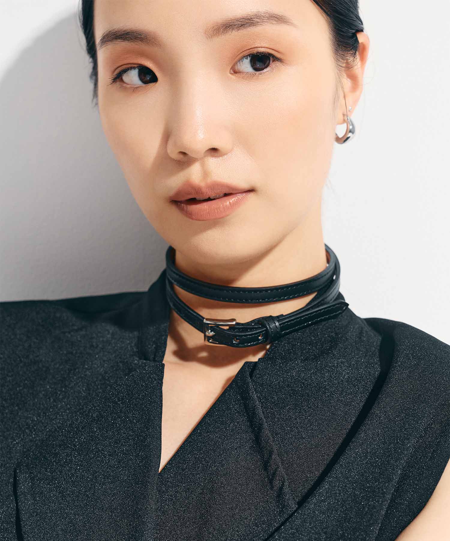 〈デザイン〉・レザースキニーチョーカー・フォーマルからカジュアルまで対応可能〈素材〉・丈夫な牛革を使用透け感 なし裏地 なし伸縮性 なしメーカー品番:FTC254-2006FETICO2020年にデザイナー舟山瑛美とパタンナー高浜温子がフェティコ(FETICO)をスタート。ブランド名は、デザイナーを務める舟山瑛美のニックネームから名付けられている。ブランドの着想源となるのは、女性の造形美を強調するスタイル。女性の美意識や身体観を独自の視点で再構築し、様々な要素を組み合わせながらユニークで新しい女性像を提案する。ラインナップするアイテムは、透け感や光沢のある素材を用い、女性の体のラインを美しく見せるシルエットに仕立てている。日本国内で生産されているのも特徴で、素材だけでなく縫製のクオリティの高さもブランドの強みとなっている。