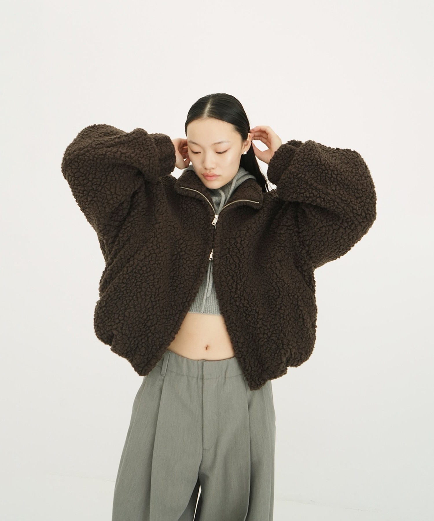〈デザイン〉・立体的なバルーンフォルムに加え、ボリュームスリーブとコンパクトな丈感が絶妙なバランス・柔らかく弾力のあるボア素材は、見た目にも暖かく、防寒性も抜群。軽やかな着心地で、真冬のアウターとしても活躍・フロントはダブルジップ仕様で、スタイリングに合わせて開き具合を調整可能・裾に施されたドローコードで、シルエットのアレンジも楽しめる・パンツにもスカートにも合わせやすい丈感で、日常使いからお出かけまで幅広く活躍する1着シーズンムードを高めてくれる、冬の主役アウター〈素材〉透け感 なし裏地 あり伸縮性 裾部分ありメーカー品番:19101-0032CLANE松本恵奈が2015年に設立した日本のファッションブランド。ブランドコンセプトは「オリジナル スタンダード(ORIGINAL STANDARD)」。アイテムはスタンダードに現代的な柄、素材、デザインを取り入れ新しいフォルムを表現。「特別な一枚」を重視し、長く愛用できる洋服を提案していく。