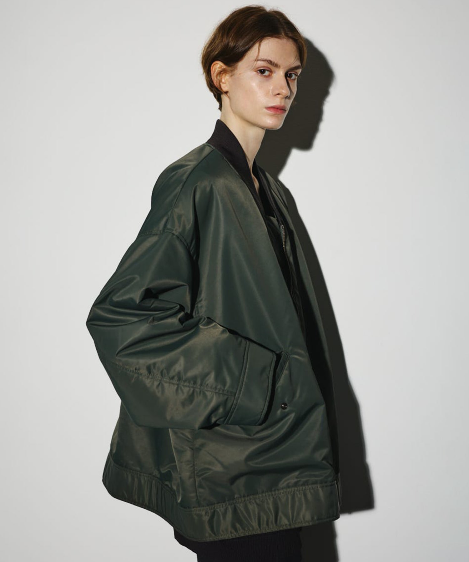 〈デザイン〉・ワイドなシルエットのMA-1をあえて裾をリブでとめずハリを出したテントラインでスタイリッシュ・中綿入りのため、軽いのに暖かく厚手のニットも余裕で着用可能・ネックを少し深めに設計し、撥水機能も・顔回りをすっきり大人っぽく見せてくれるデザイン・冬のアウターとしてはもちろん、アウトドアシーンにもおすすめの一枚〈素材〉透け感 なし裏地 あり伸縮性 なしメーカー品番:460IAS30-0451RIM.ARK凛とした強さ、知性、品格。揺るぎない「芯」。 RIM.ARKが目指すのは、自立した女性の美しさを引き立てる服。 無駄を削ぎ落としたシンプルでミニマルなデザイン。 ものづくりの息吹が感じられる素材、立体的なシルエット。 トレンドにとらわれない、タイムレスで本質的なアイテムを通して纏う人の内面的な豊かさを表現している。