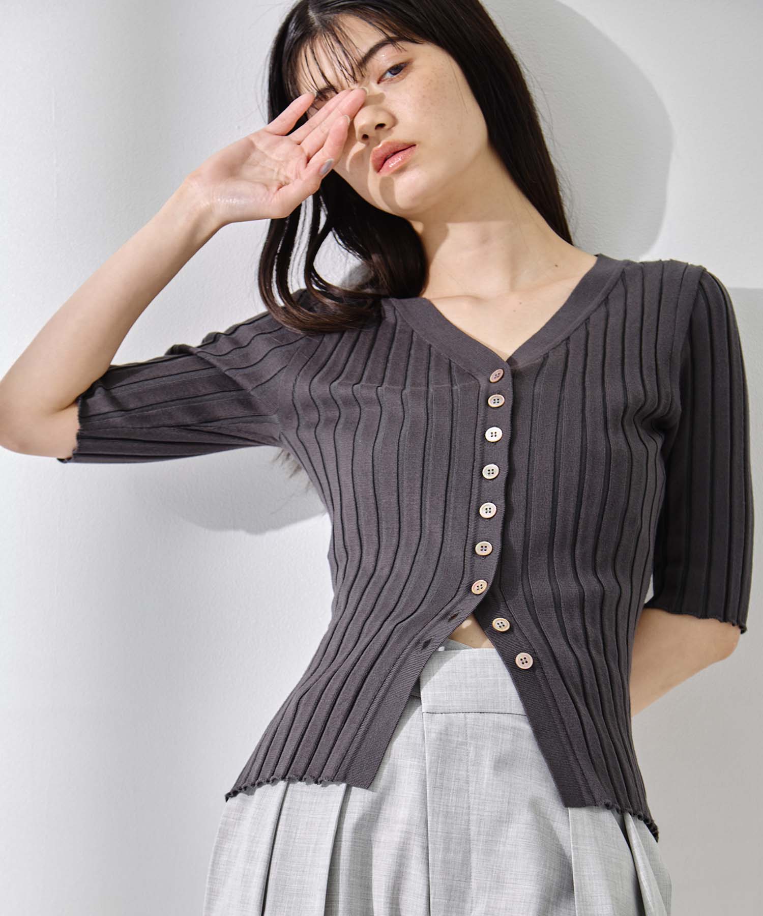 ・二の腕をほっそり見せる長めの袖丈