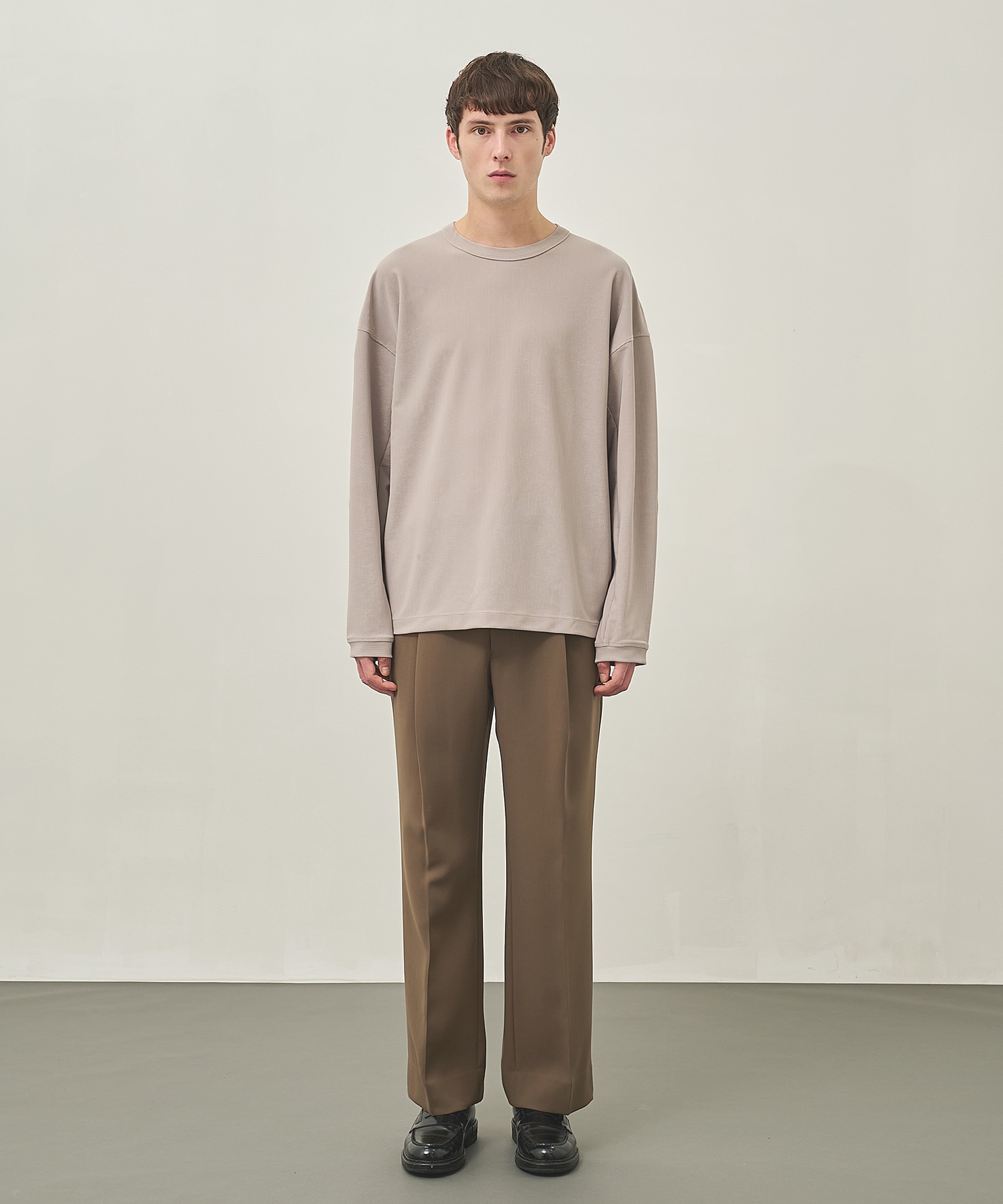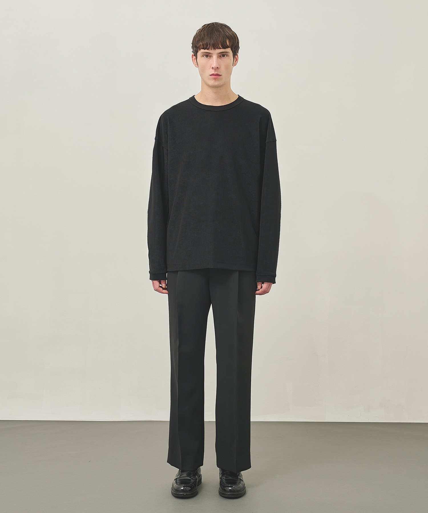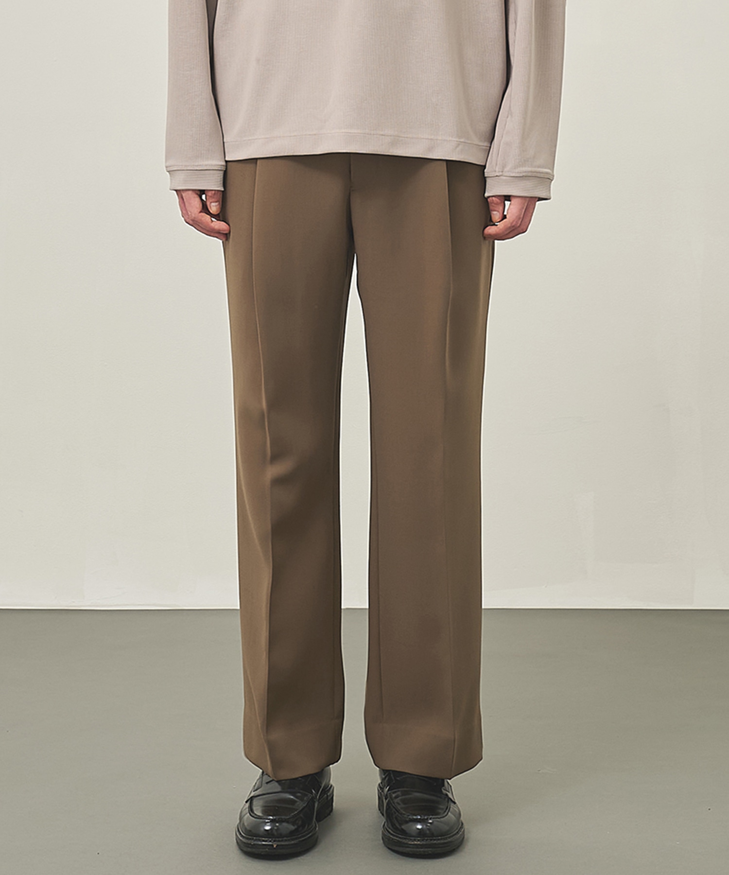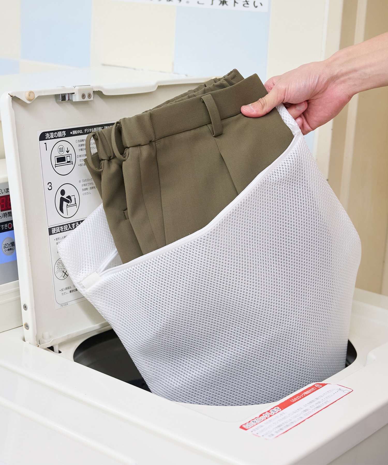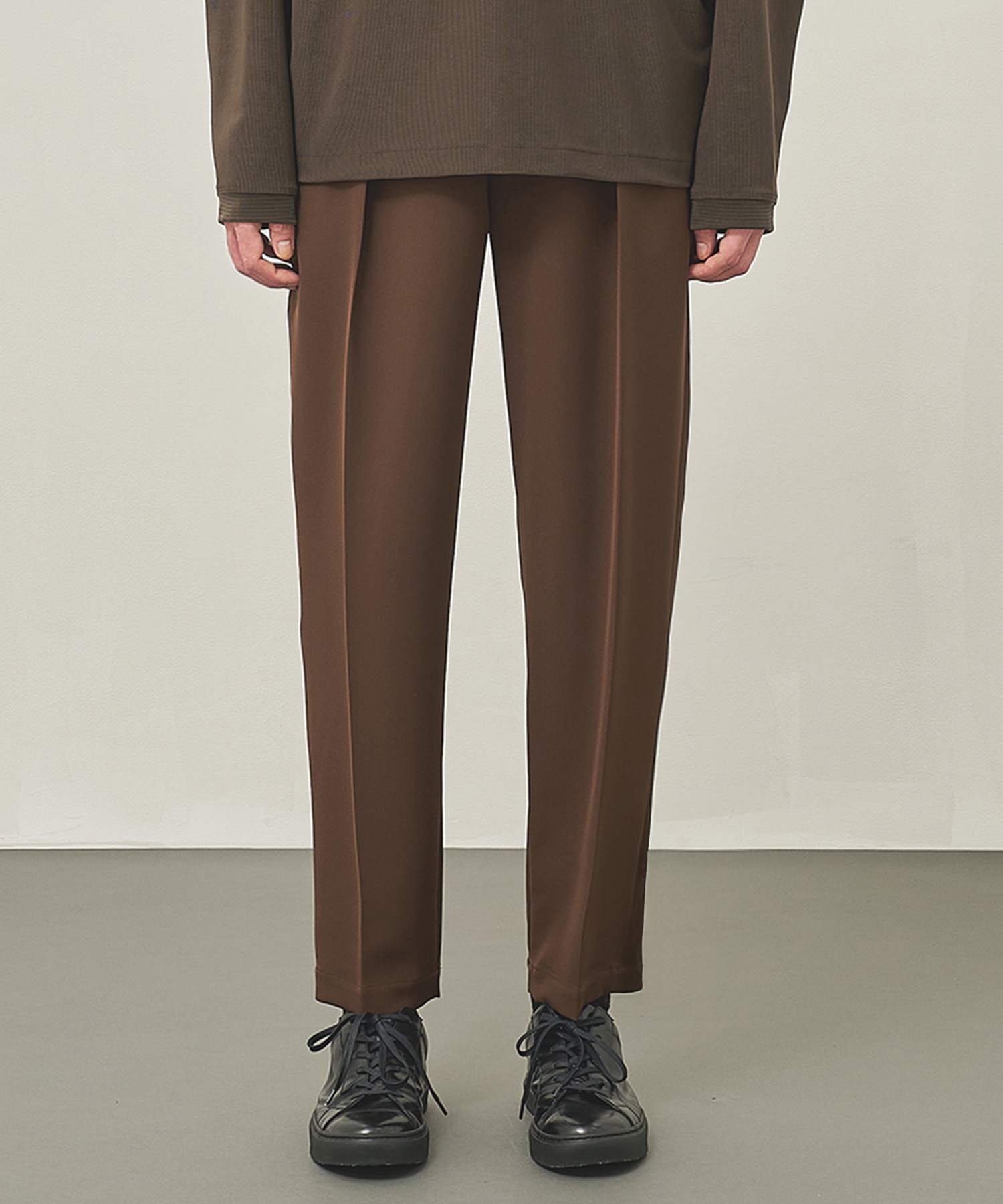 ジャケットと同素材で、ウールライクな見え感。センタープレスは洗濯しても取れづらい加工を施し、洗ってもすたれない綺麗さと強度のあるイージースラックス。