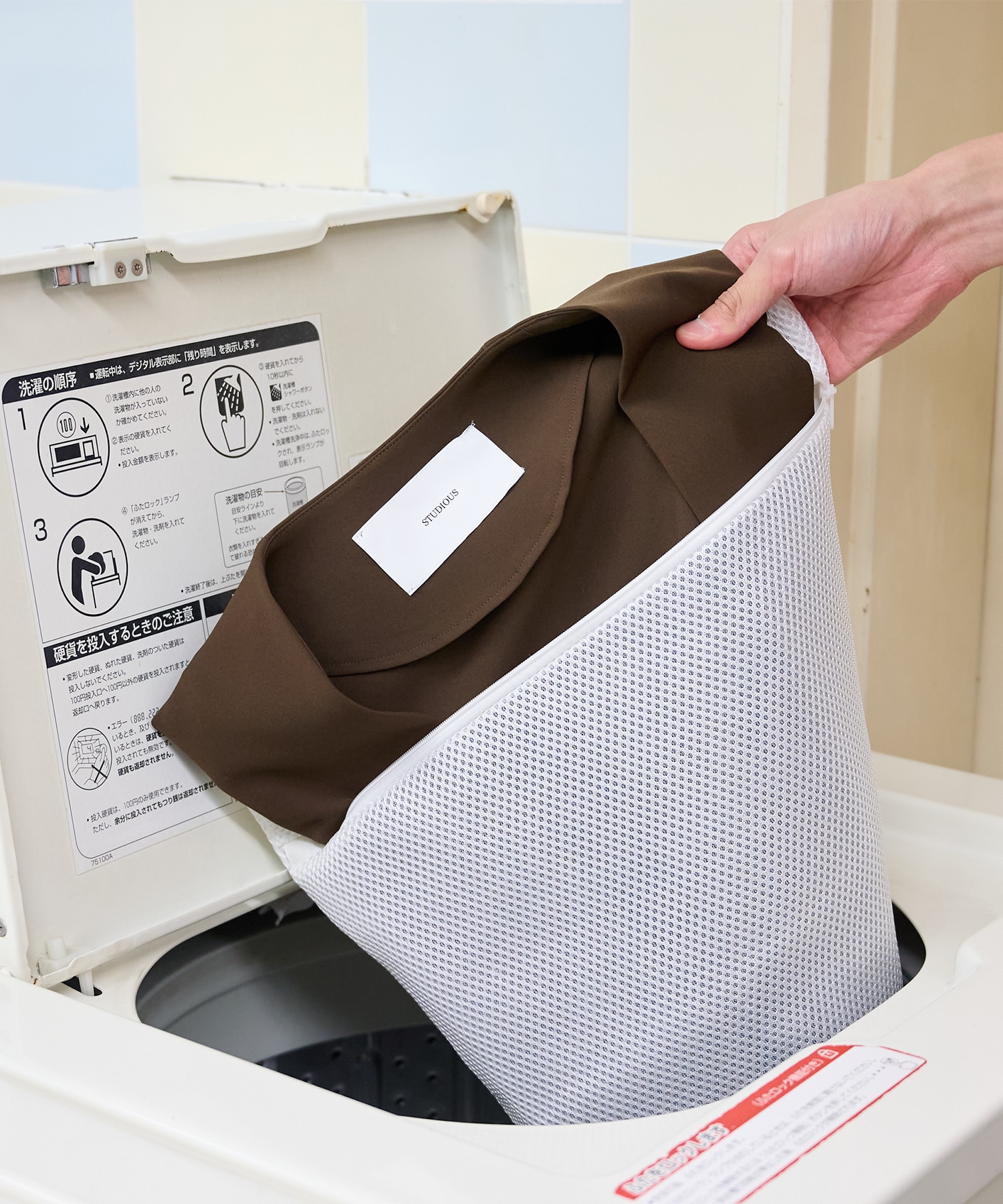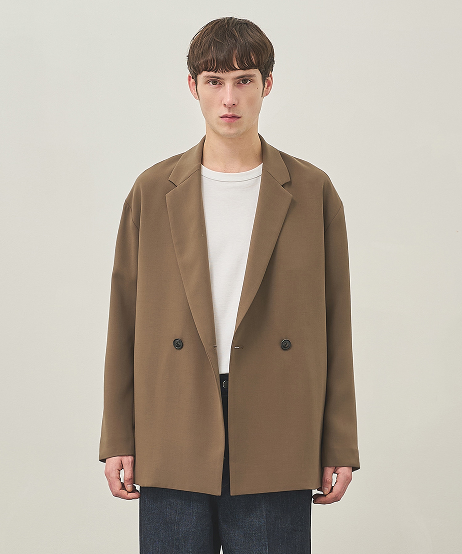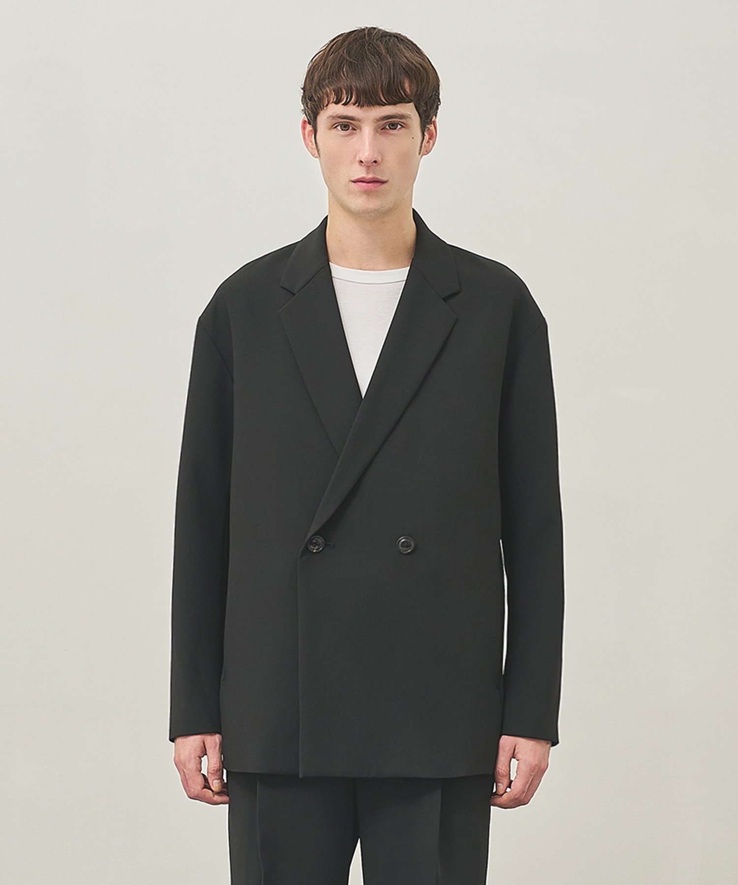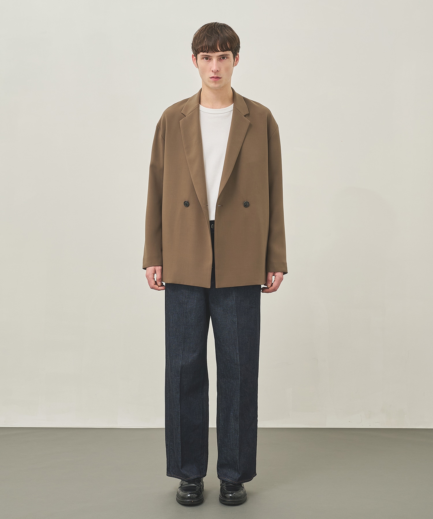糸を密に編み込み、ポリエステルなのにウールのような光沢とハリのあるジャケット。ダブル仕様のジャケットなのに家庭で洗えて、速乾のイージーケアも持ち合わせた、オンオフ兼用のアイテム。