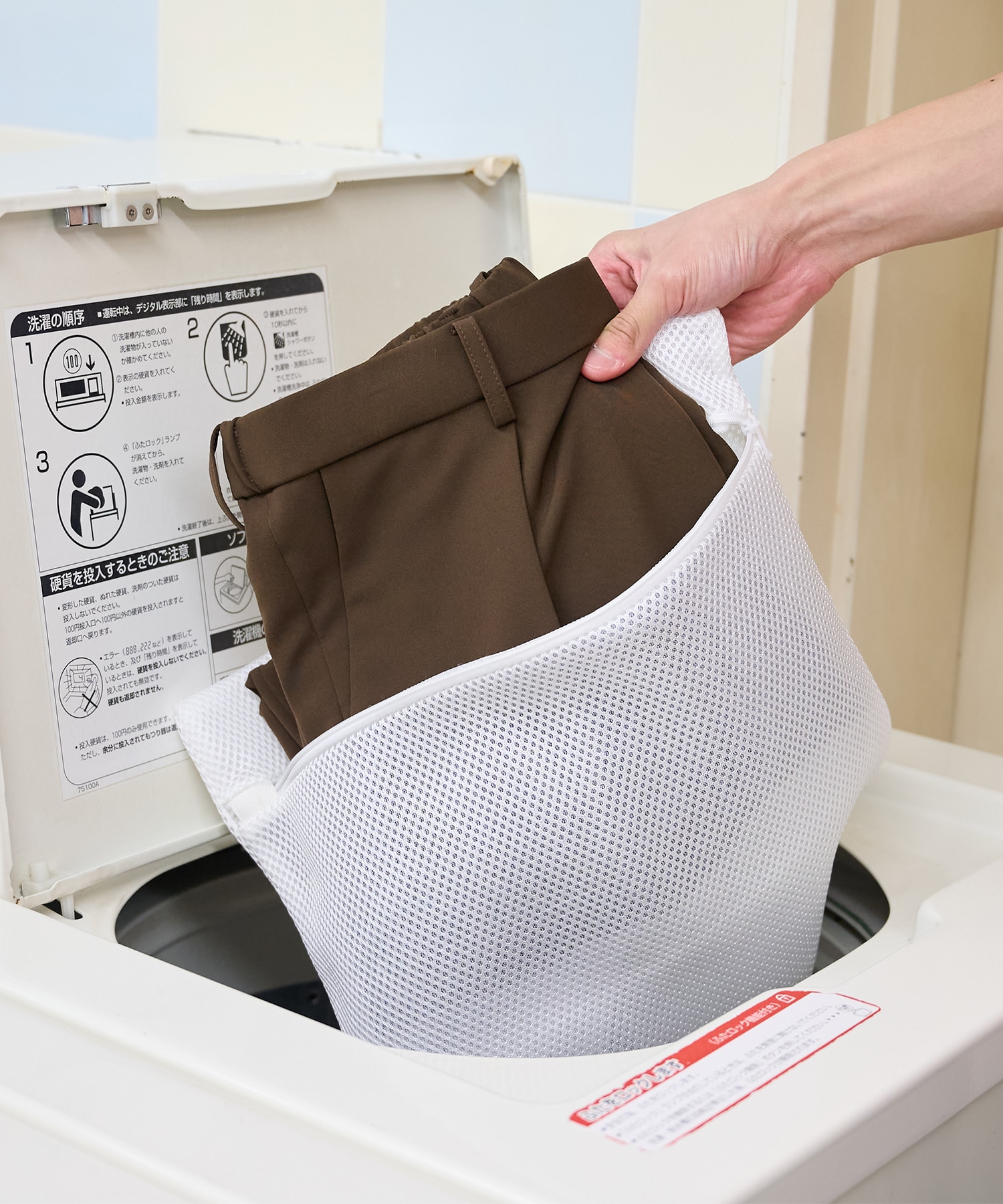 ベルトループのついた綺麗な見え感からは想像できない圧倒的伸縮性。ウエストもゴムと紐で調整でき、快適すぎる履き心地。洗濯、シワ防止などのイージーケアも備えたアイテム。